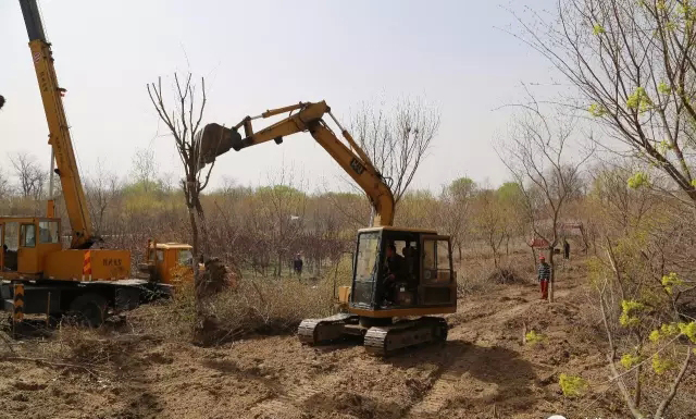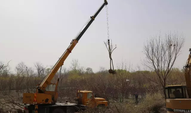 在高升苗木基地廠區(qū),首先映入眼簾的是一棵棵系著“紅頭繩”橫臥的元寶槭樹,一輛輛吊車正在慢慢吊起樹,緩緩地移出林區(qū),吊裝入卡車,準備二次移植。所有被選中待移栽的樹苗都系上了“紅頭繩”,大家三個一組、五一個隊的圍在一起挖土起樹。起初,大家揮鍬挖土勁頭兒十足,坑越挖越大可是動作越來越慢,最后竟是小心翼翼的慢動作——清理樹根,原來這份“迅速”與“小心”是為了減少對樹苗的損傷,為提高移栽種苗的成活率做保障。技術(shù)人員說,每種樹木都有自己適應(yīng)的環(huán)境,同是一個地方也有陰面陽面,背風沖風的區(qū)別,同一個樹種苗齡不一樣,對環(huán)境的適應(yīng)能力也大有區(qū)別,所以選樹種要認真,起樹更要認真仔細。