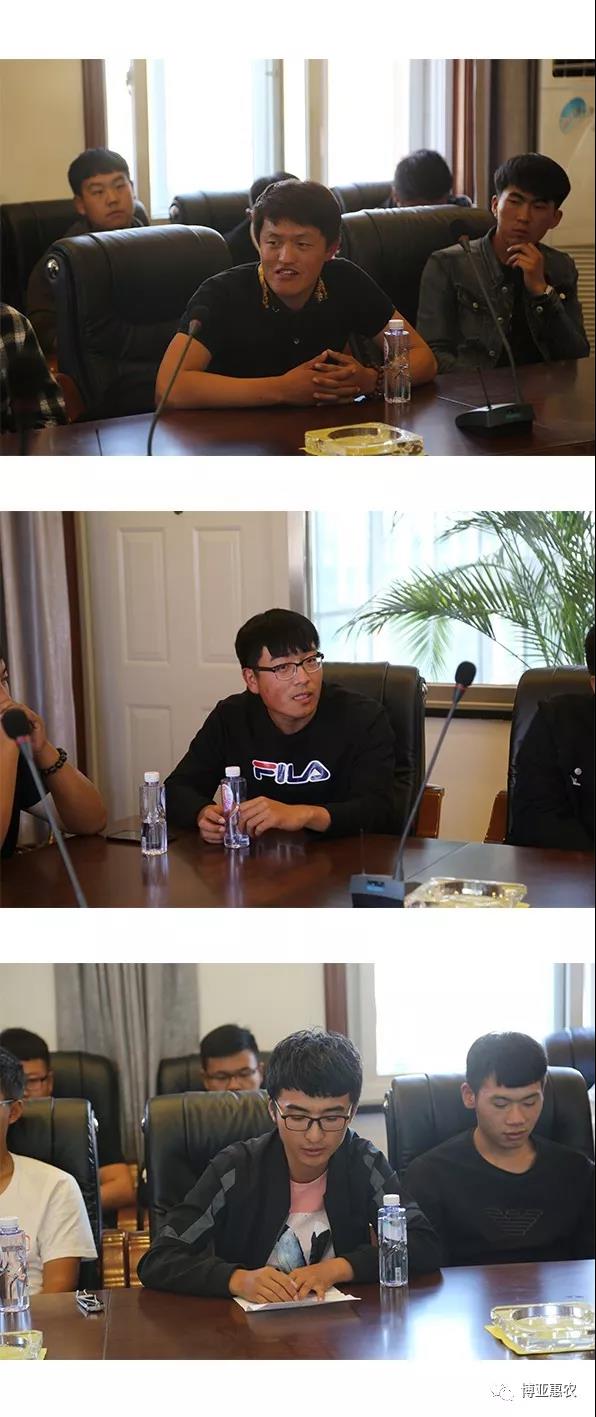 集團(tuán)(兼惠農(nóng)公司)總經(jīng)理田成久、惠農(nóng)公司副總經(jīng)理姜明玉、副總經(jīng)理康桂宏、惠農(nóng)總工陳洪吉,以及歷屆畢業(yè)大學(xué)生和實(shí)習(xí)生代表共 24 人出席了會(huì)議。會(huì)議由集團(tuán)人力資源部部長(zhǎng)萬飛主持。